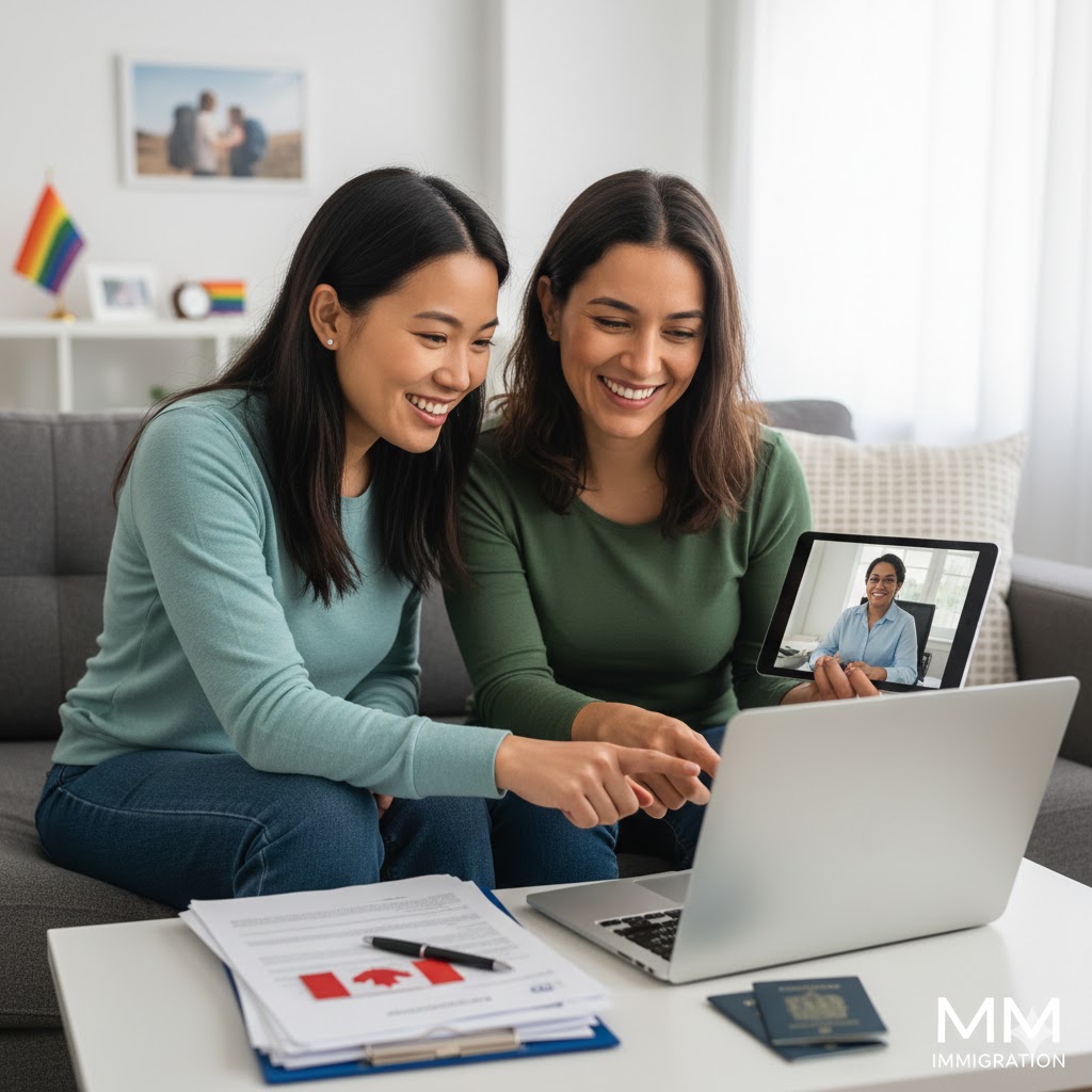 Spousal sponsorship allows a Canadian citizen or permanent resident to sponsor their partner for PR status. For same-sex couples, the process is effectively the same as for heterosexual couples, provided the partnership is legally recognized.